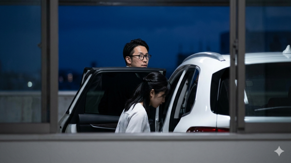会社の近く、街灯の少ない通りで、夫の車の助手席に「そっと」乗り込む彼女の姿を。